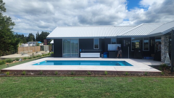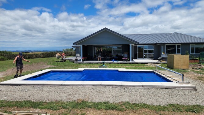 The other was an 8x4.4m side entry pool. Both installations went really well, and the clients were fantastic – we were treated to endless coffees and cheese scones.