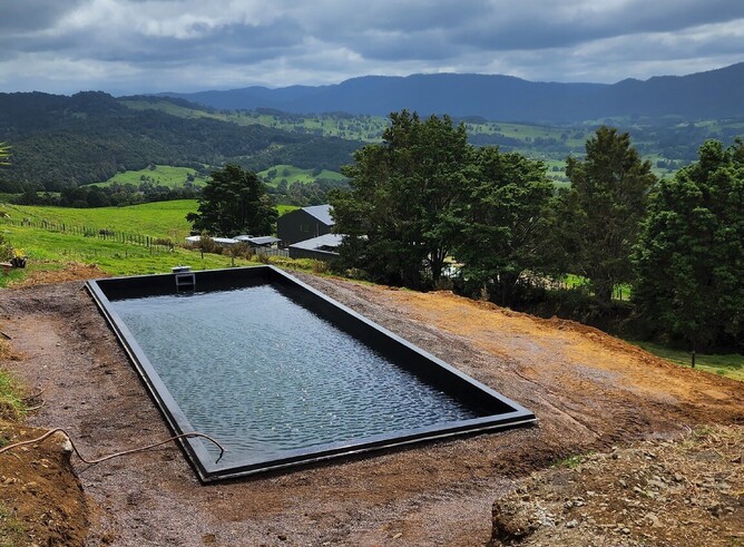 Luckily, our digger driver Corey is unreal on his machine and used big volcanic rocks found in the client's paddock to build retaining walls that hold the hillside together. TBH, the black pool isn't the most popular these days, but we all have our preferences, and the main thing is we have a happy client 👍.