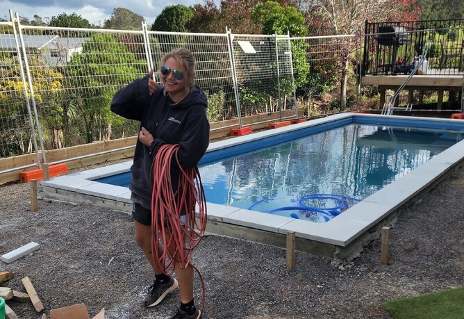 Been a bit slack on the socials, but Sunseeker Pools is well and truly underway. First pool in the ground for an awesome young family in Kerikeri; quite a challenging, sloped section, but it's turned out great. Just need fencing and a good clean this week, and it'll be good to go 👍.